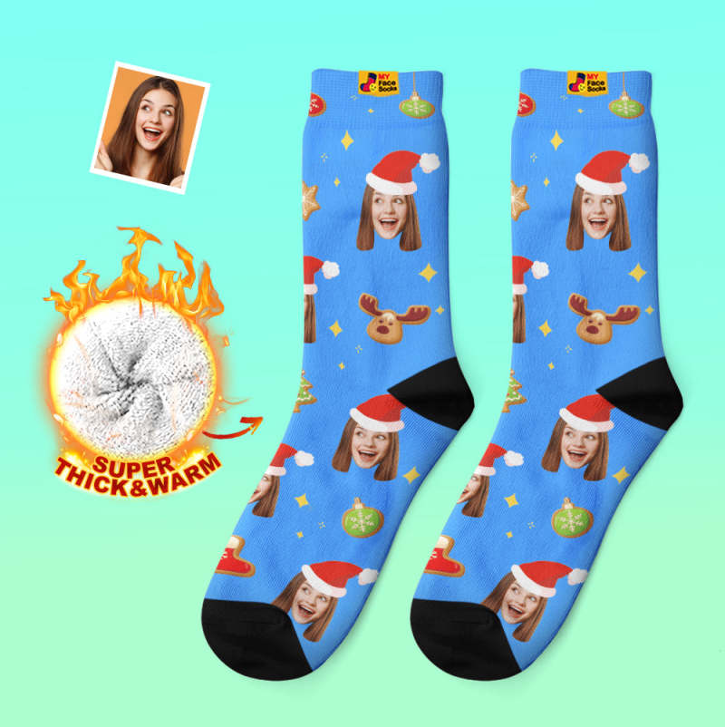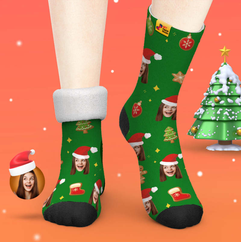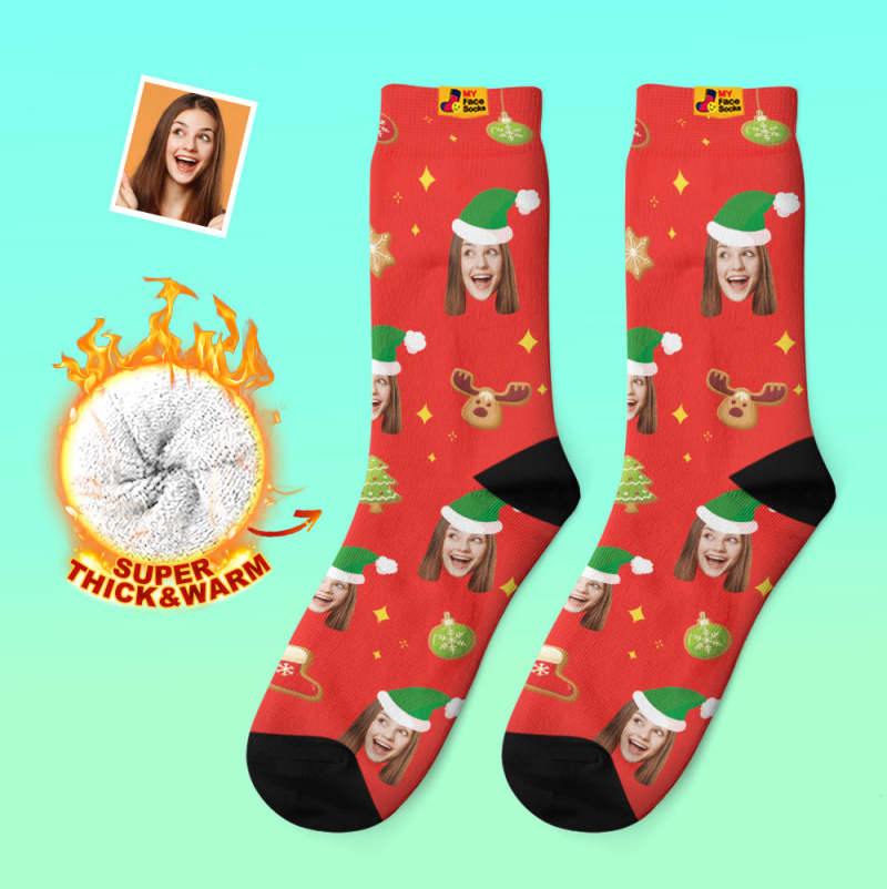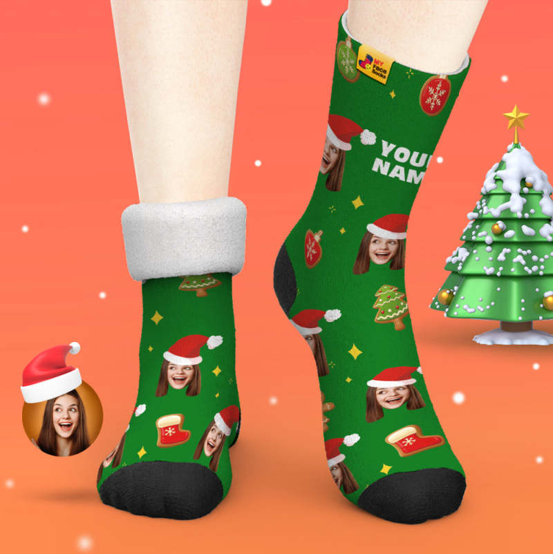 Custom Thick Socks Photo 3D Digital Printed Socks Autumn Winter Warm Socks Christmas Tree Decor Face Socks Funny Christmas Gift
