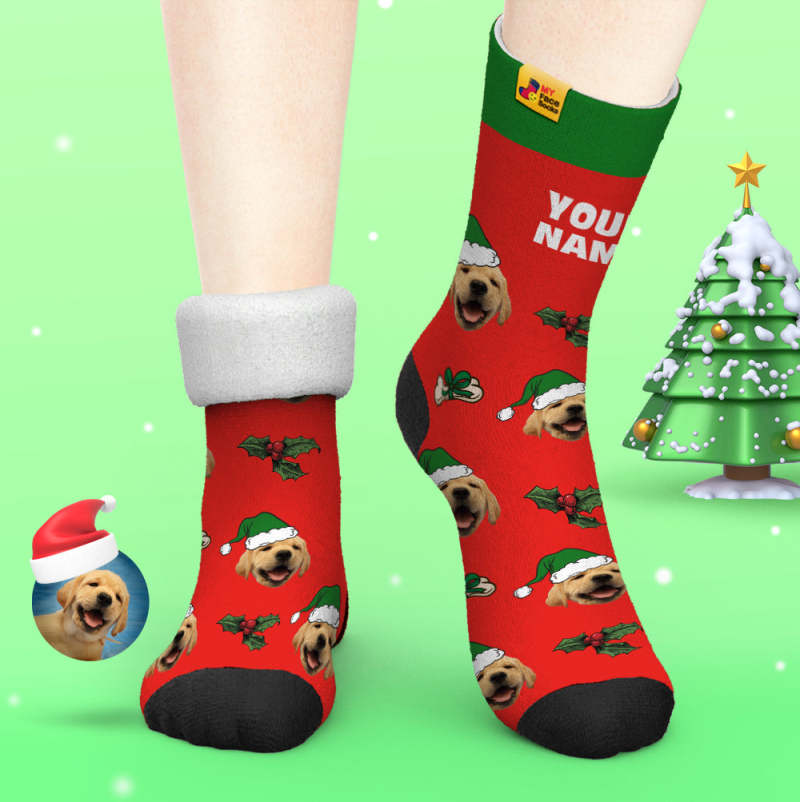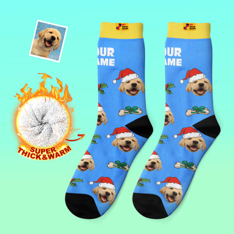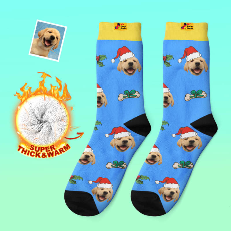 Custom Thick Socks Photo 3D Digital Printed Socks Autumn Winter Warm Socks Cute Pet Face Socks Christmas Gift