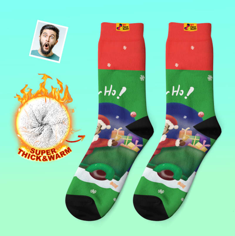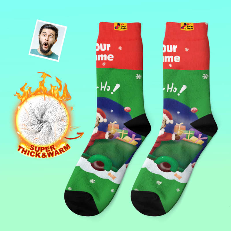 Custom Thick Socks Photo Autumn Winter Warm Socks Santa Claus Hats Christmas Gift Socks Ho Ho