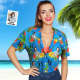 Custom Your Own Face Birthday Blue Women Hawaiian Shirt Custom Age and Name Yellow and Red Flowers Shirt