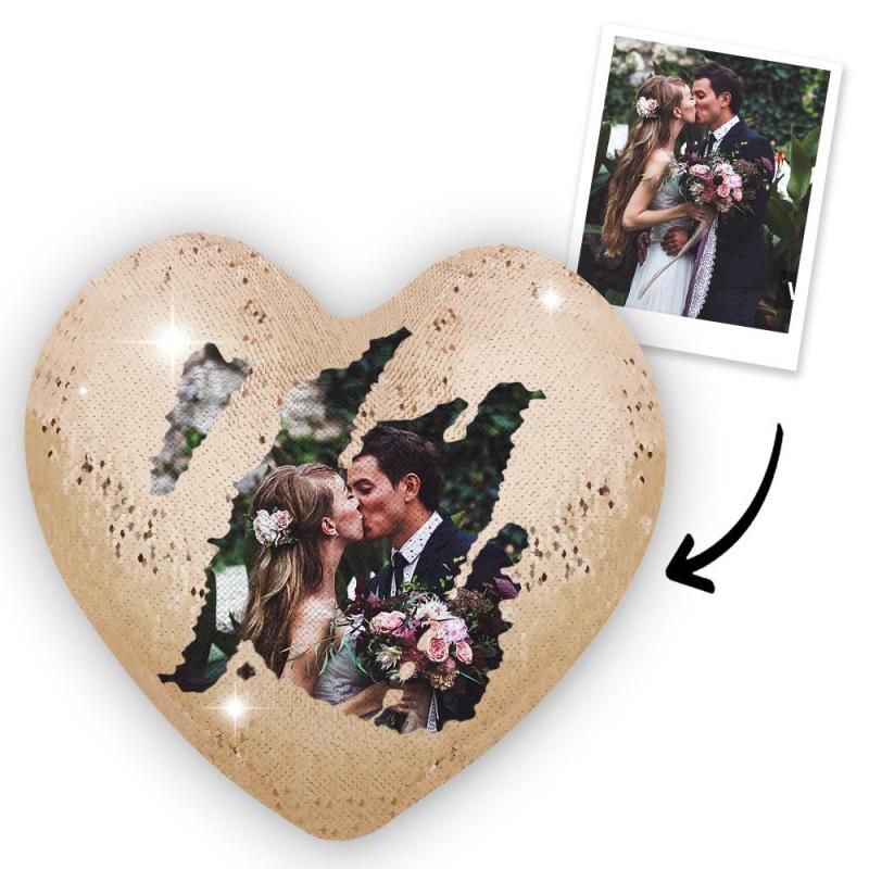 Custom Photo Magic Heart Sequin Cushion Pillow
