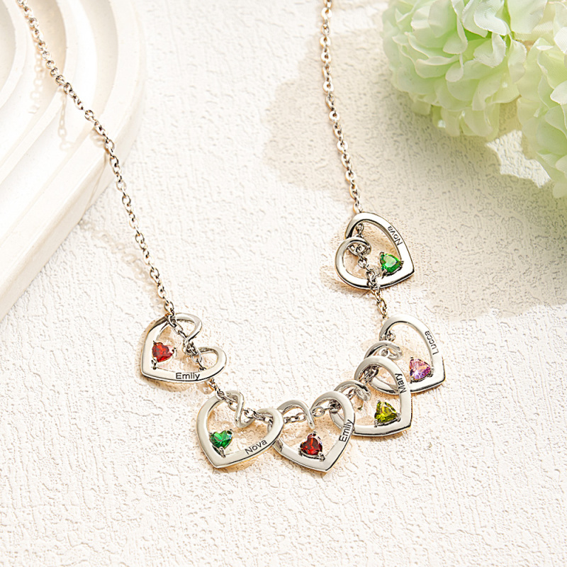 Personalized Heart Name & Birthstone Necklace Custom Gift for Mom or Grandma Christmas Gift Idea