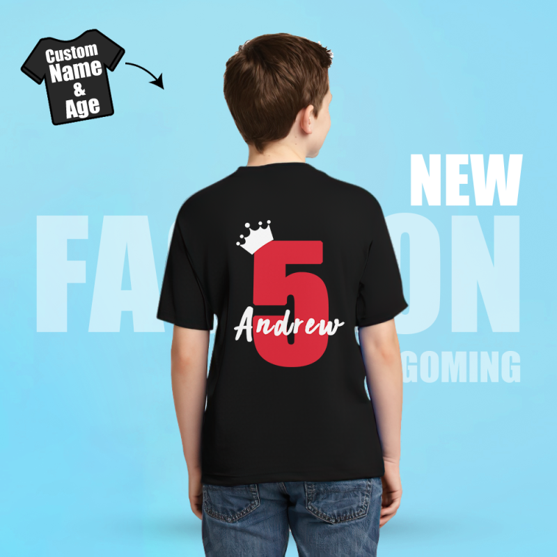 Personalized Name and Age Crown White T-shirt Children's T-shirt Custom Kids Clothing Top