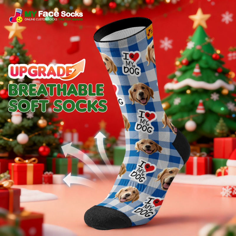 Personalized Pet Dog Theme Socks Christmas Socks Custom I Love You Socks Pet Lover Santa Socks Gift