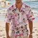 Personalized Women Light Blue Beach Leaves Face Hawaiian Shirt Face Couple Shirt Vacation Gift For Coupl