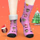 Pink Christmas Custom Thick Socks Photo 3D Digital Printed Socks Autumn Winter Warm Socks