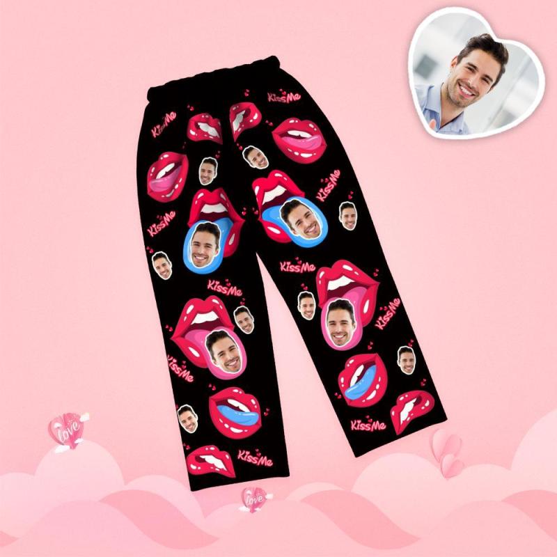 Custom Face Pajamas Long Sleeve Valentine's Day Tongue Kiss