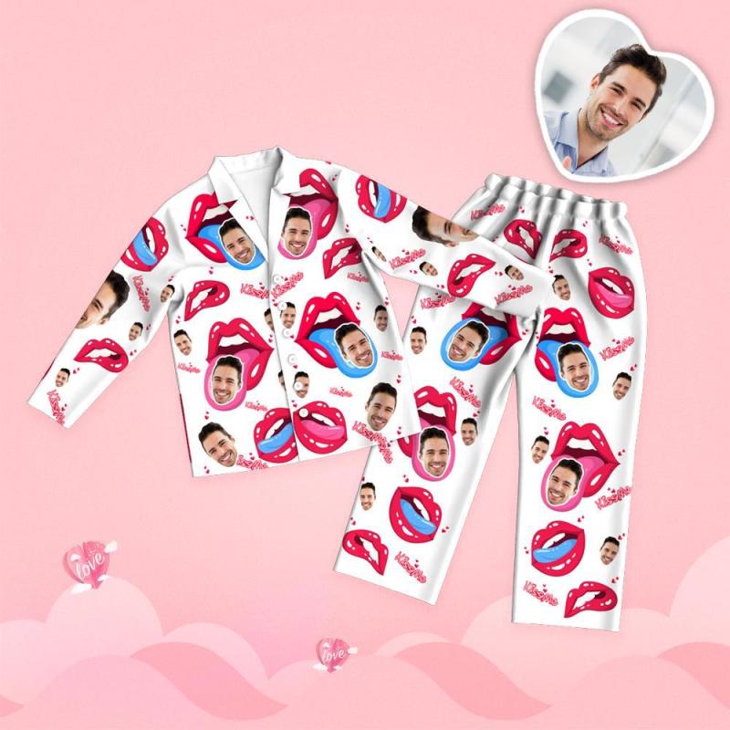 Custom Face Pajamas Long Sleeve Set Valentine's Day Tongue Kiss