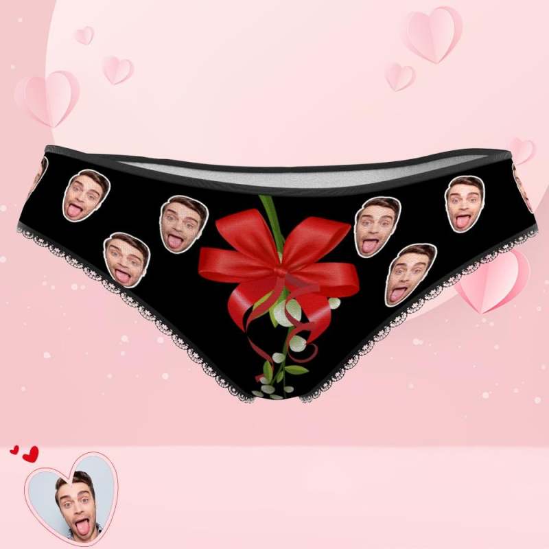 Custom Face Women's Panties Underwear Gifts For Girlfriend Mistletoe and Rose
