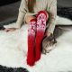 Women Winter Leg Warmers Knit Socks Christmas Elk Red Long Wool Over The Knee Pile Socks